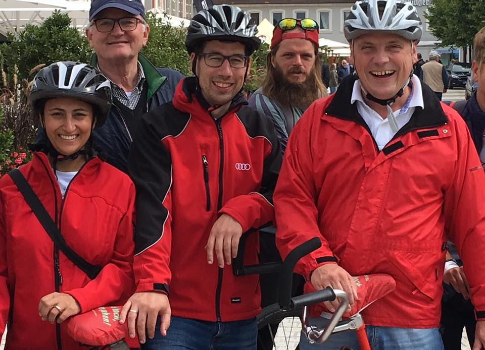 Das rote Tandem gehört schon zu den Traditionen der Region. Jedes Jahr setzen sich Landtagsabgeordneter Daniel Born und der Schwetzinger Ortsvereinsvorsitzende und Stadtrat Simon Abraham mindestens einmal auf das feuerrote Gefährt um Bürgergespräche, Vor-Ort-Erkundung und sportlichen Ehrgeiz zu verknüpfen.